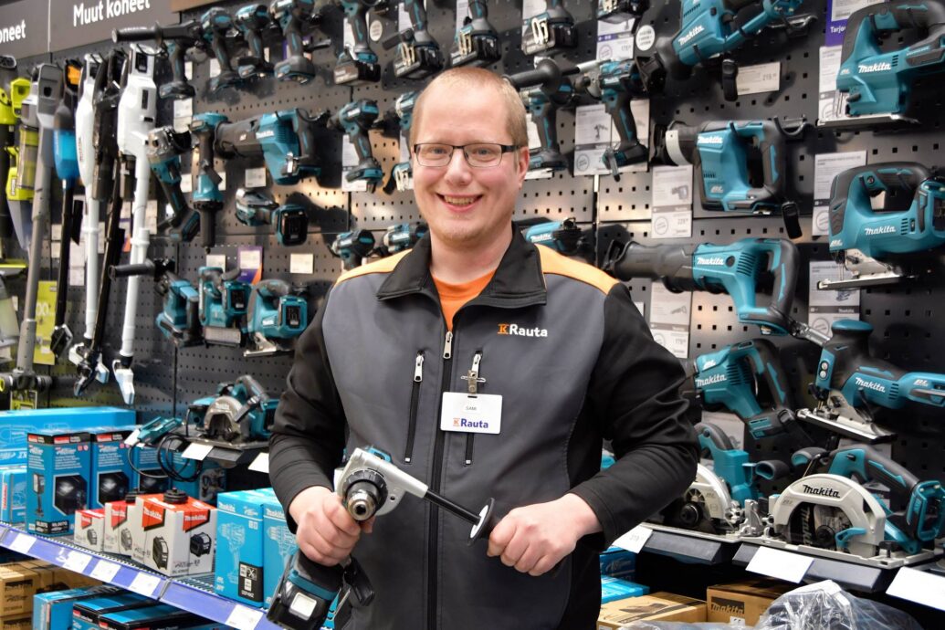Tradenomi Sami Tolvanen on tehnyt monipuolisen kierroksen Mikkelin seudun K-ketjujen kaupoissa. Hän on työskennellyt K-Citymarketissa, K-Supermarket Maksimatissa ja sitten K-Supermarket Rokkalassa ennen kuin aloitti K-Rauta Mikkelissä. Kokemusta rautakaupan alalta on kertynyt viitisentoista vuotta ja kaikkiaan kaupan alalta yli 20 vuotta.