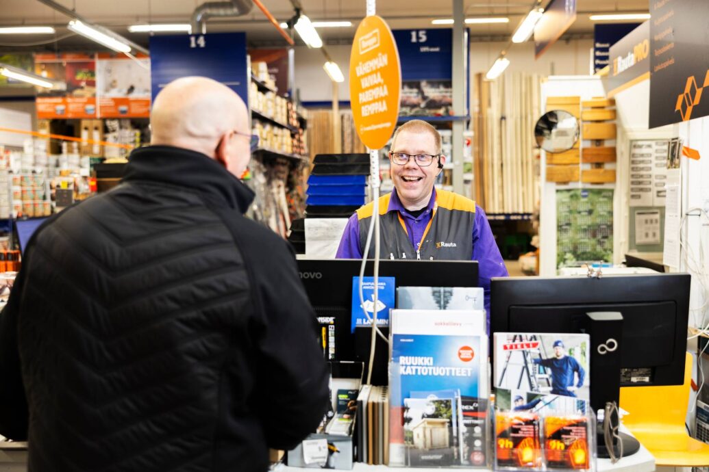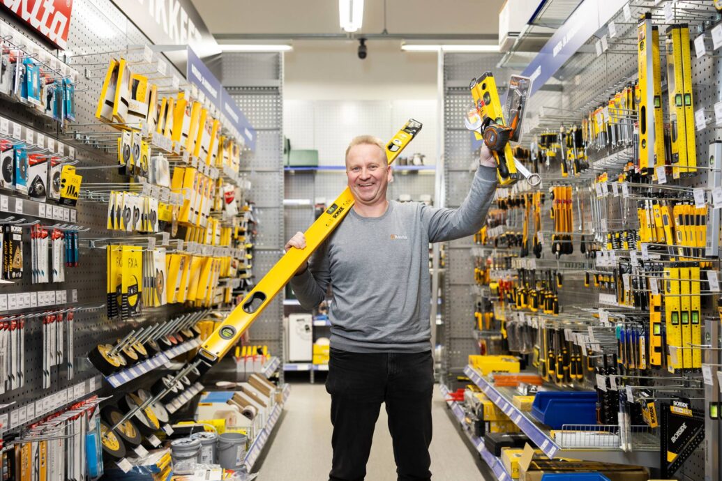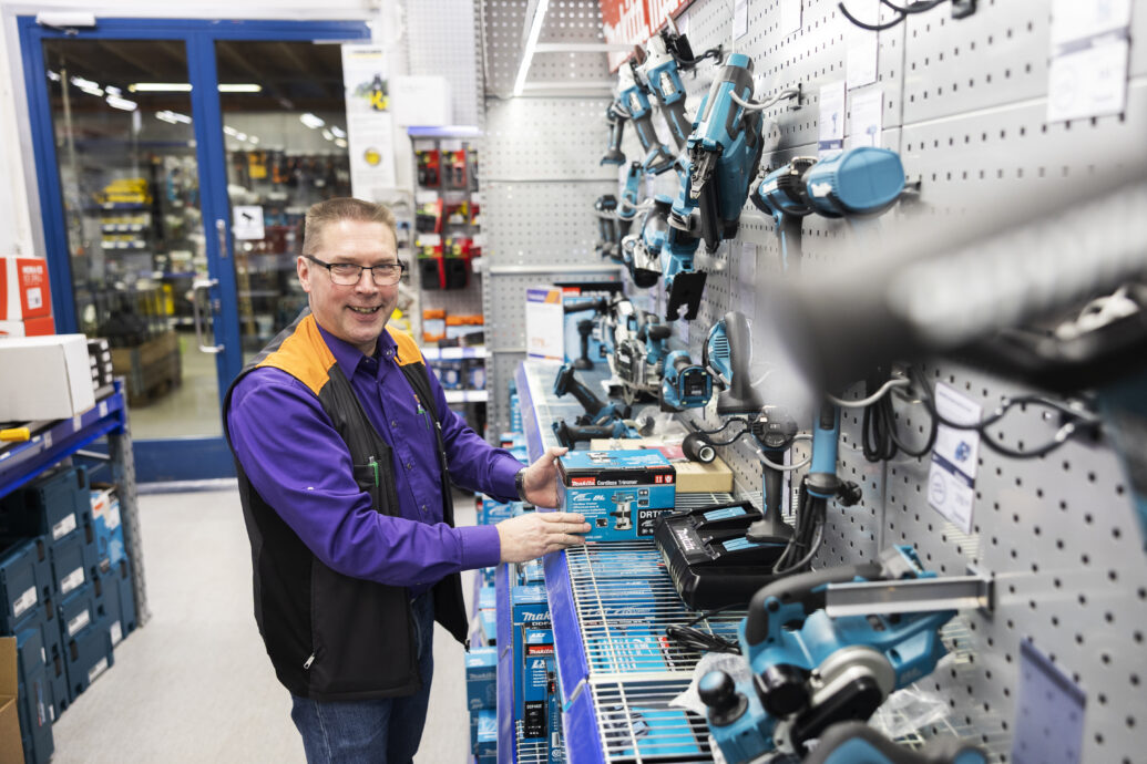 – Palvelu perustuu siihen, että jokaista asiakasta otetaan hihasta kiinni. Keskustellessa ilmenee usein lisätarpeitakin. Meillä asiakas lähtee harvoin vain yhden ruuvipussin kanssa kaupasta ulos.