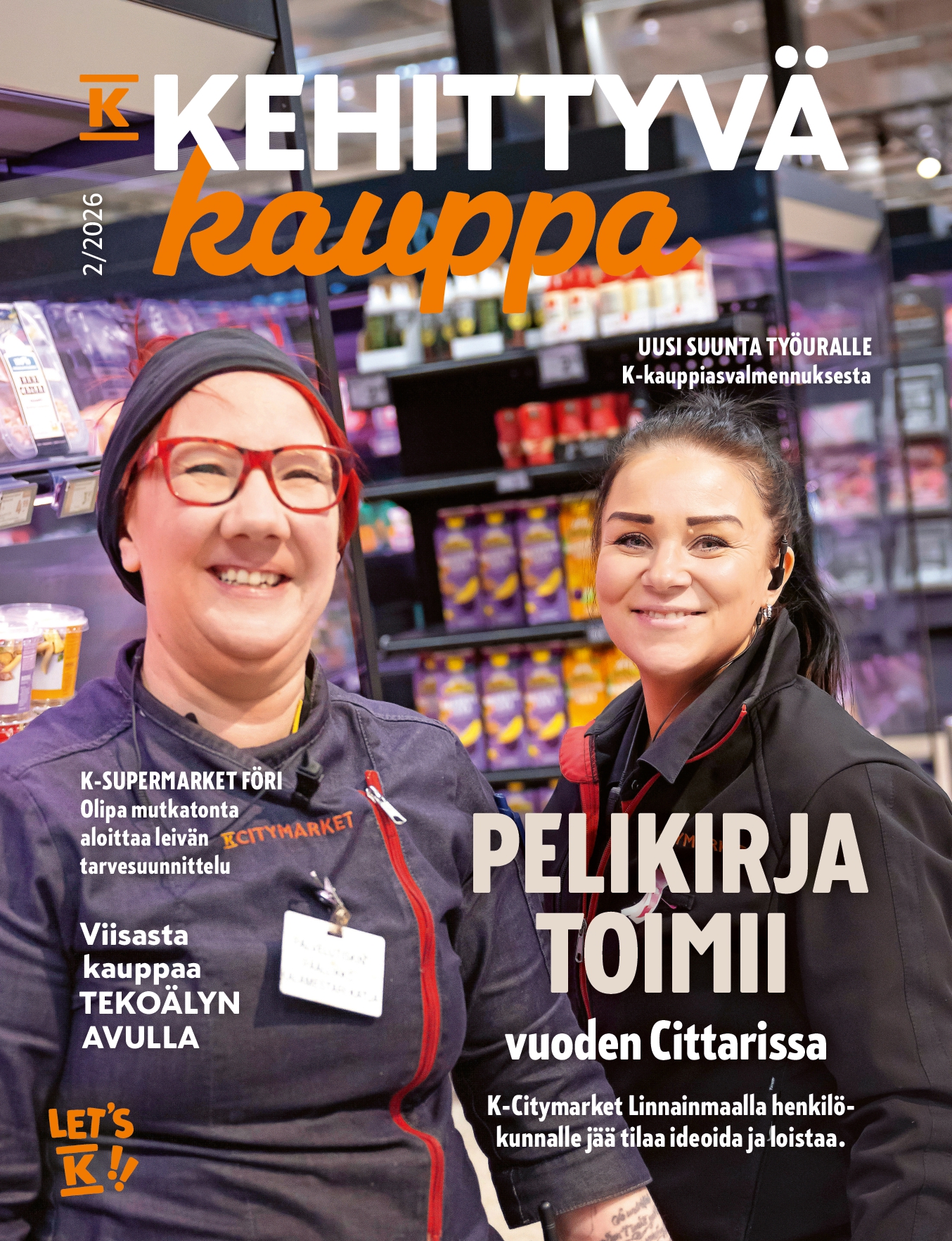 Kehittyvä kauppa on K-kauppiasliiton kustantama K-kaupan ammattilehti, joka välittää osaamista, inspiraatiota ja hyötytietoa ajankohtaisista aiheista. Joka vuosi yhdeksän numeroa täynnä aitoja tarinoita kaupoista ja ihmisistä jokaisessa Koossa ympäri Suomen. Kehittyvää kauppaa voit seurata Instagramissa @kehittyvakauppa.